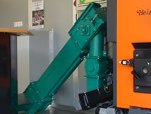 Die Gelenkarmaustragung mit Lockerungsgeometrie gewährleistet den problemlosen Transport des Heizmaterials vom Bunker zur Feuerungsanlage.